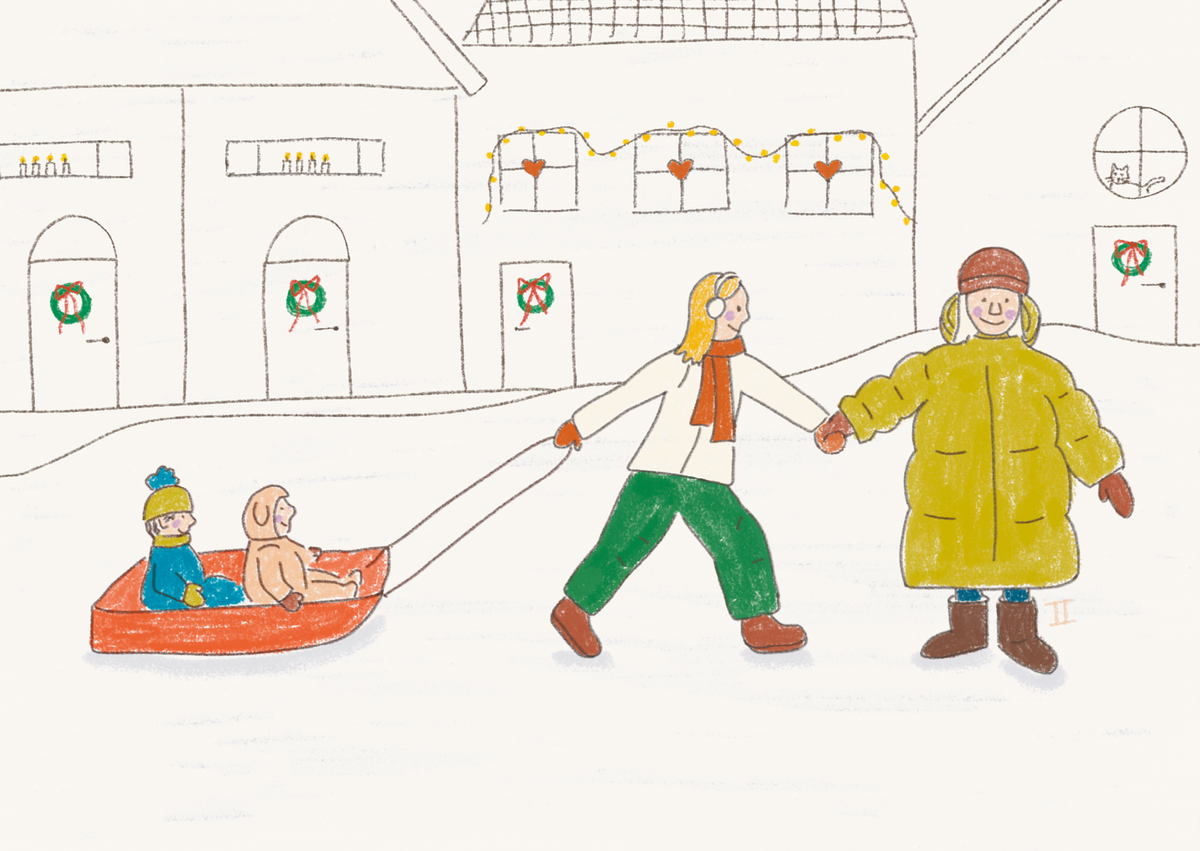 Kortissa onnellinen sateenkaariperhe ulkoilee välipäivänä. Usein ne kaikista tavallisimmat asiat ja arkisimmat hetket ovat kaikista taianomaisimmat.